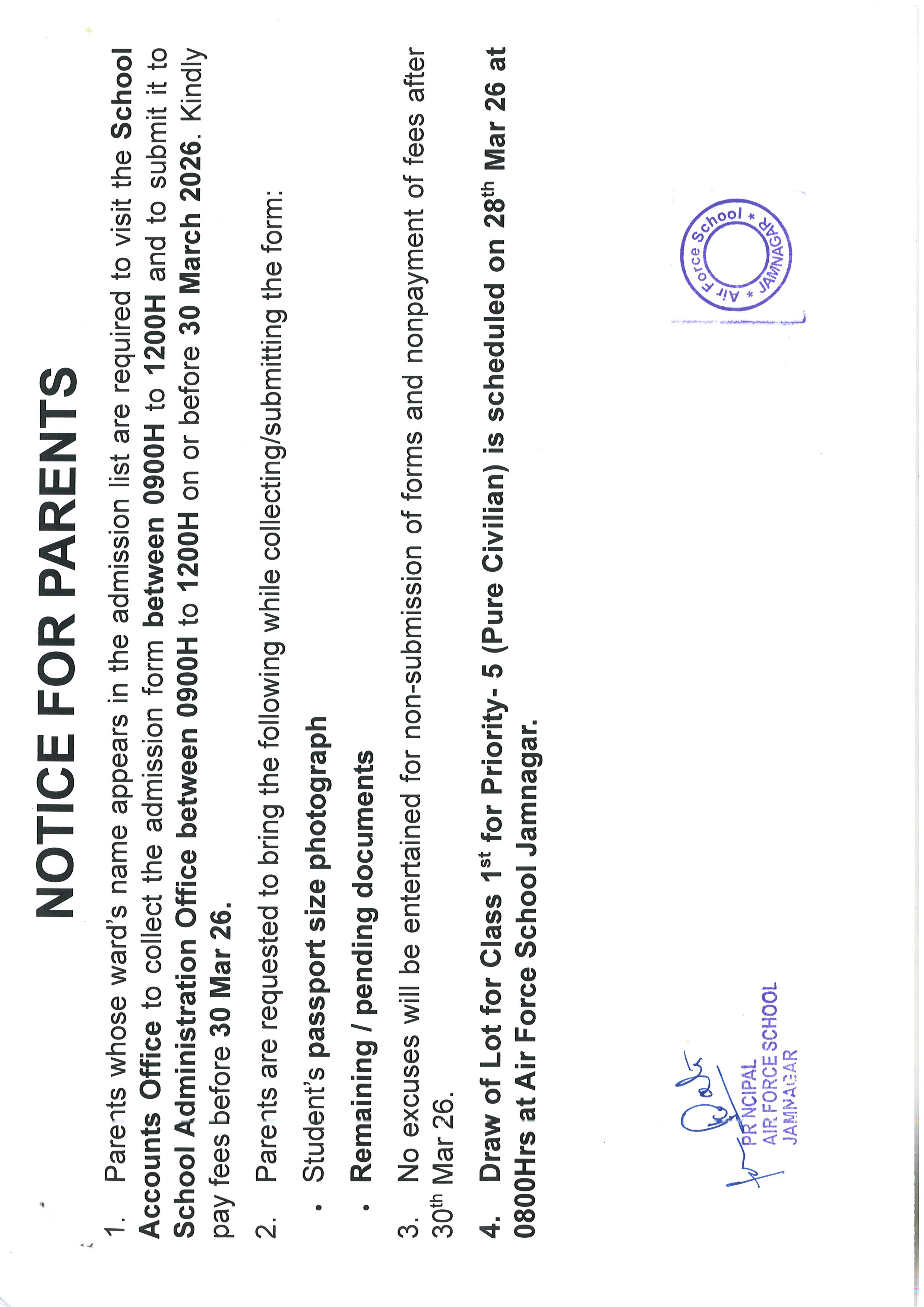 SCHOOL TIMINGS NOTICE 26-03-2026 Read More